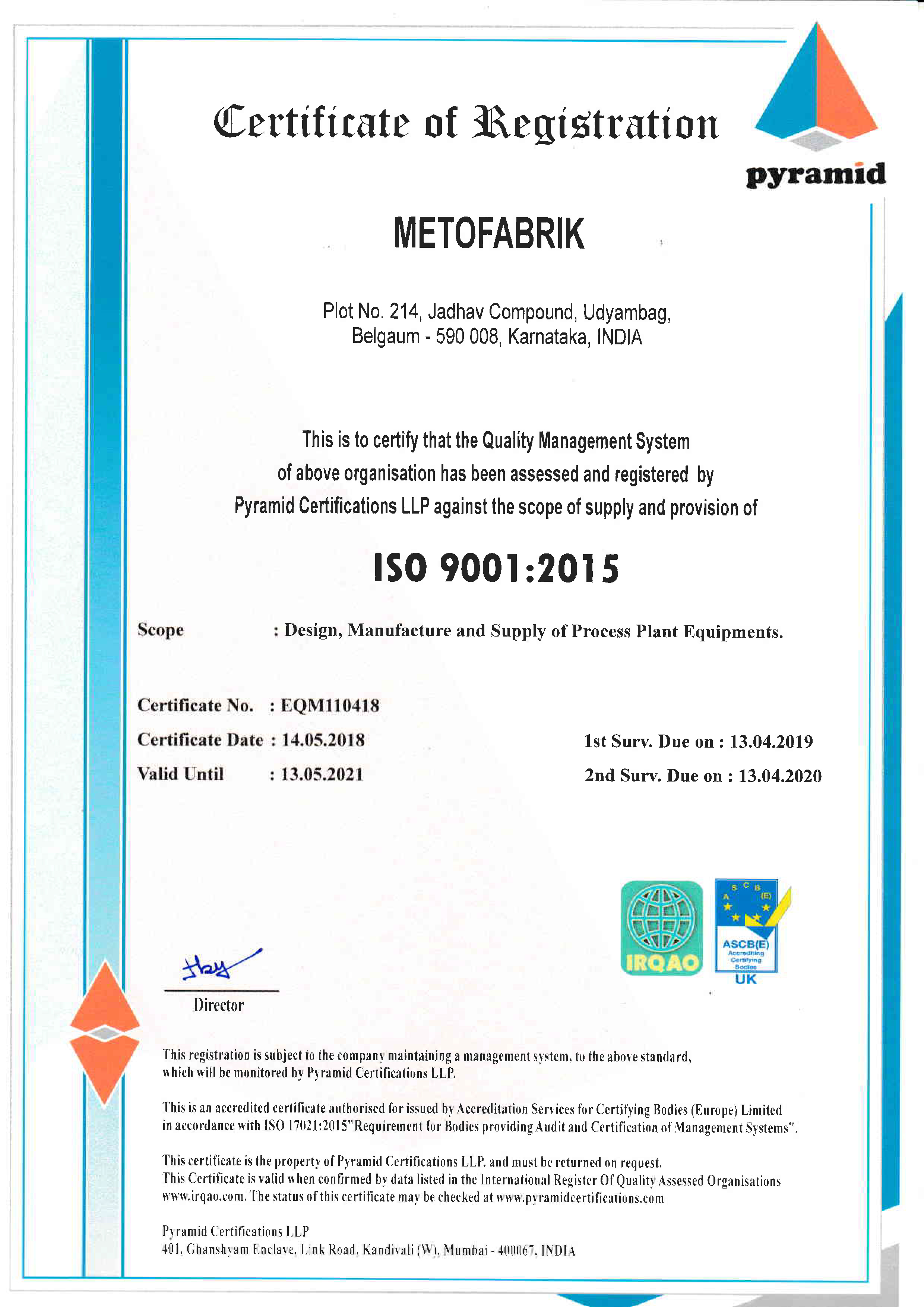 - Tele Fax : +(91) - 812 31113000 Email : info@metofabrik.in